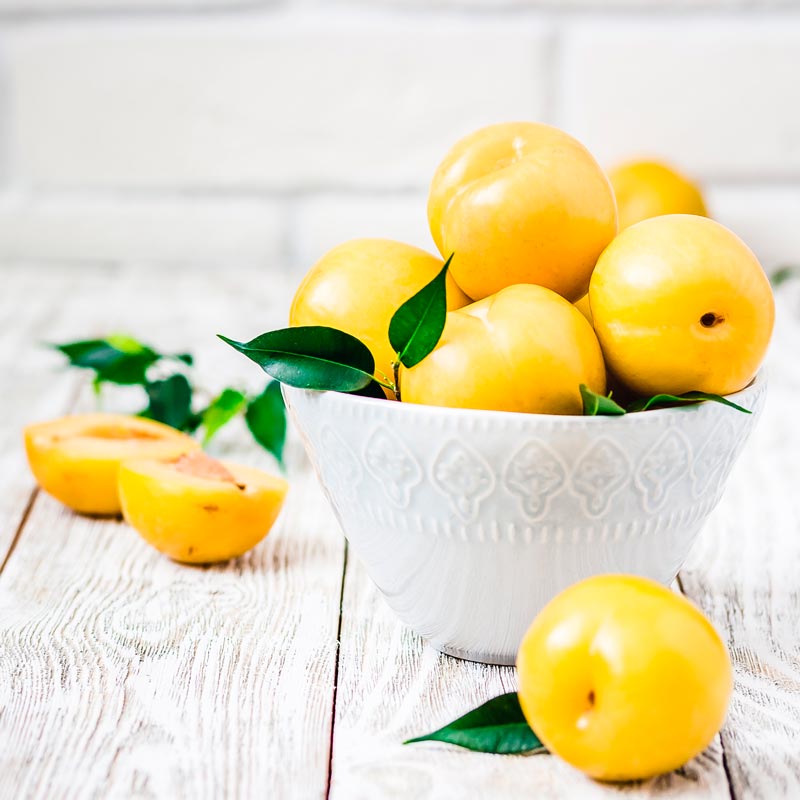 Net als de pruim is de mirabelpruim rijk aan ijzer en vezels. Het bevordert een goede darmtransit, vermindert het risico op constipatie en helpt je buik plat te houden.