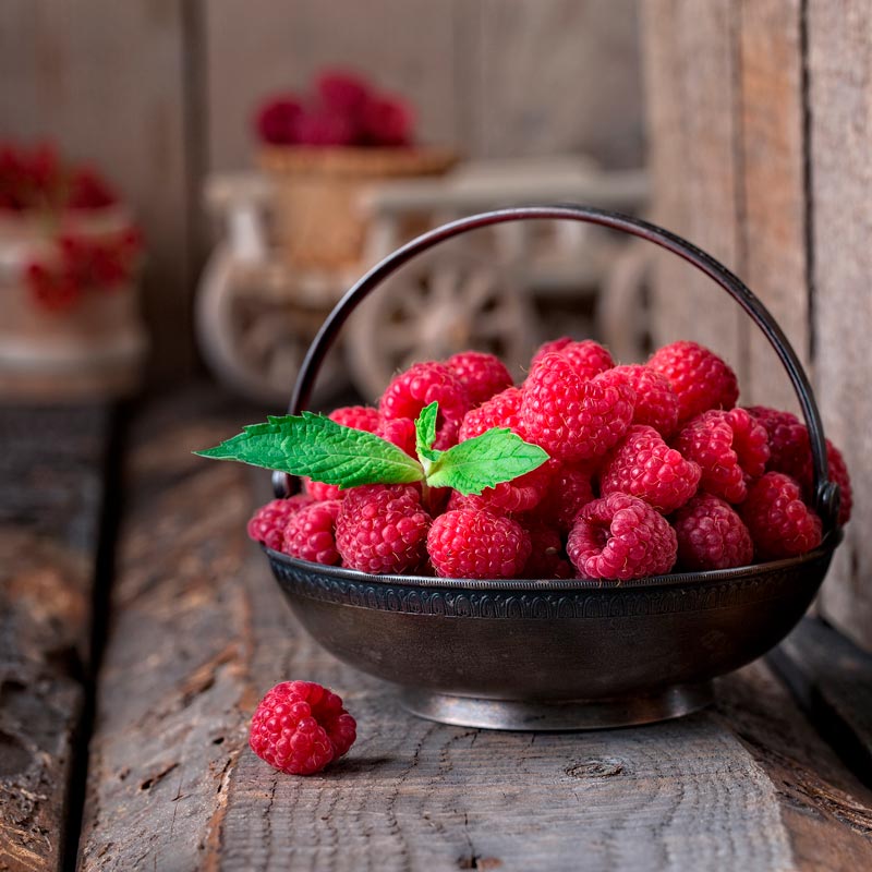 De framboos is een heerlijke vrucht die goed is voor de stofwisseling. Hij lijkt op de aardbei en is rijk aan vitamine E. Het gehalte aan ellaginezuur zou ook bepaalde vormen van kanker helpen voorkomen. Omdat het weinig calorieën en suiker bevat, is het geschikt voor zowel afslankers als diabetici. Het bevat ook magnesium, calcium, ijzer en vitamine C. De plantaardige vezels vergemakkelijken de darmtransit.