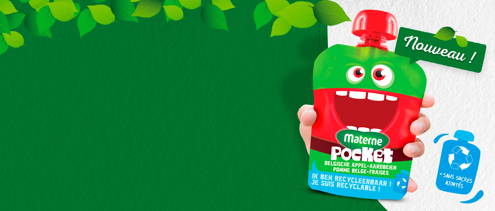 Le saviez-vous ? Nos snacks Pocket sont aussi sains pour vous que pour la planète ! Grâce à leur nouvel emballage 100 % recyclable, vous pouvez désormais jeter votre gourde entière dans la poubelle bleue.